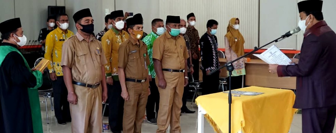 TALUK KUANTAN – Pelaksana Tugas (Plt) Drs H Suhardiman Amby Ak MM Lantik Penjabat (PJ) Kepala Desa Diruang Multimedia Kantor Bupati, Kamis (11/11/2021).